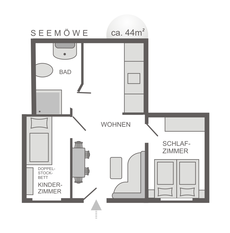 integrierter Küche, TV, WC/Dusche, Küchenzeile, 2- Plattenkocher, Kühlschrank,