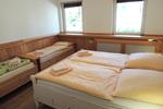separates Schlafzimmer mit Doppelbett sowie zwei Einzelbetten für Kinder (140 cm