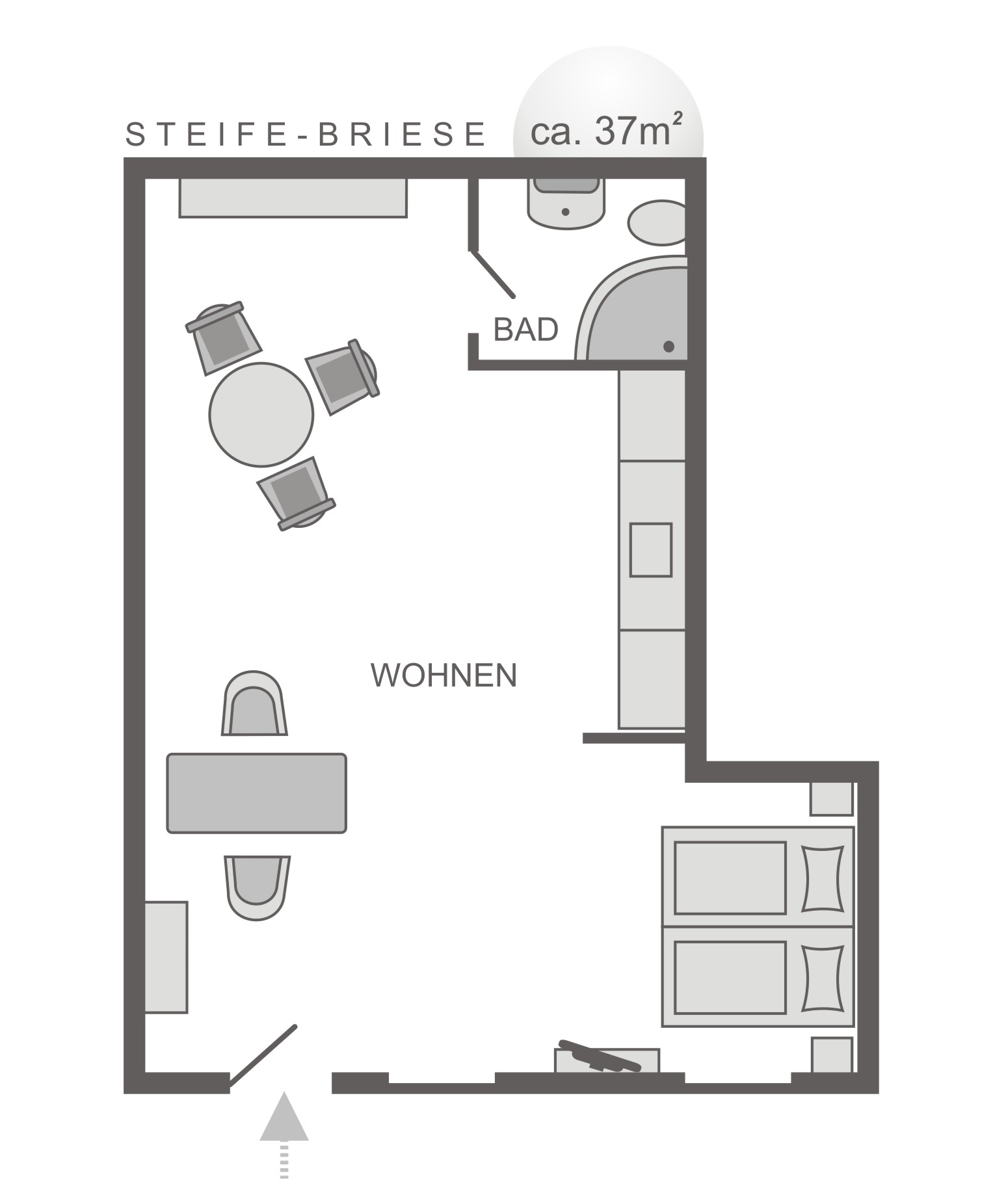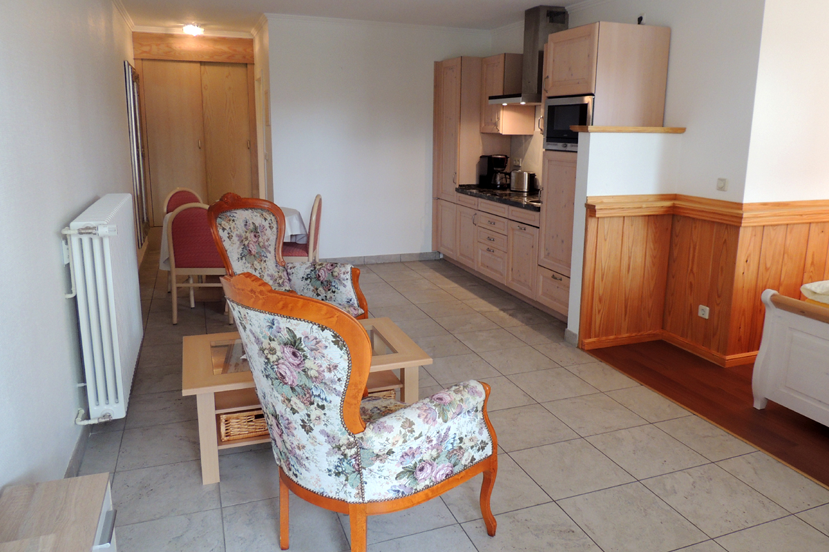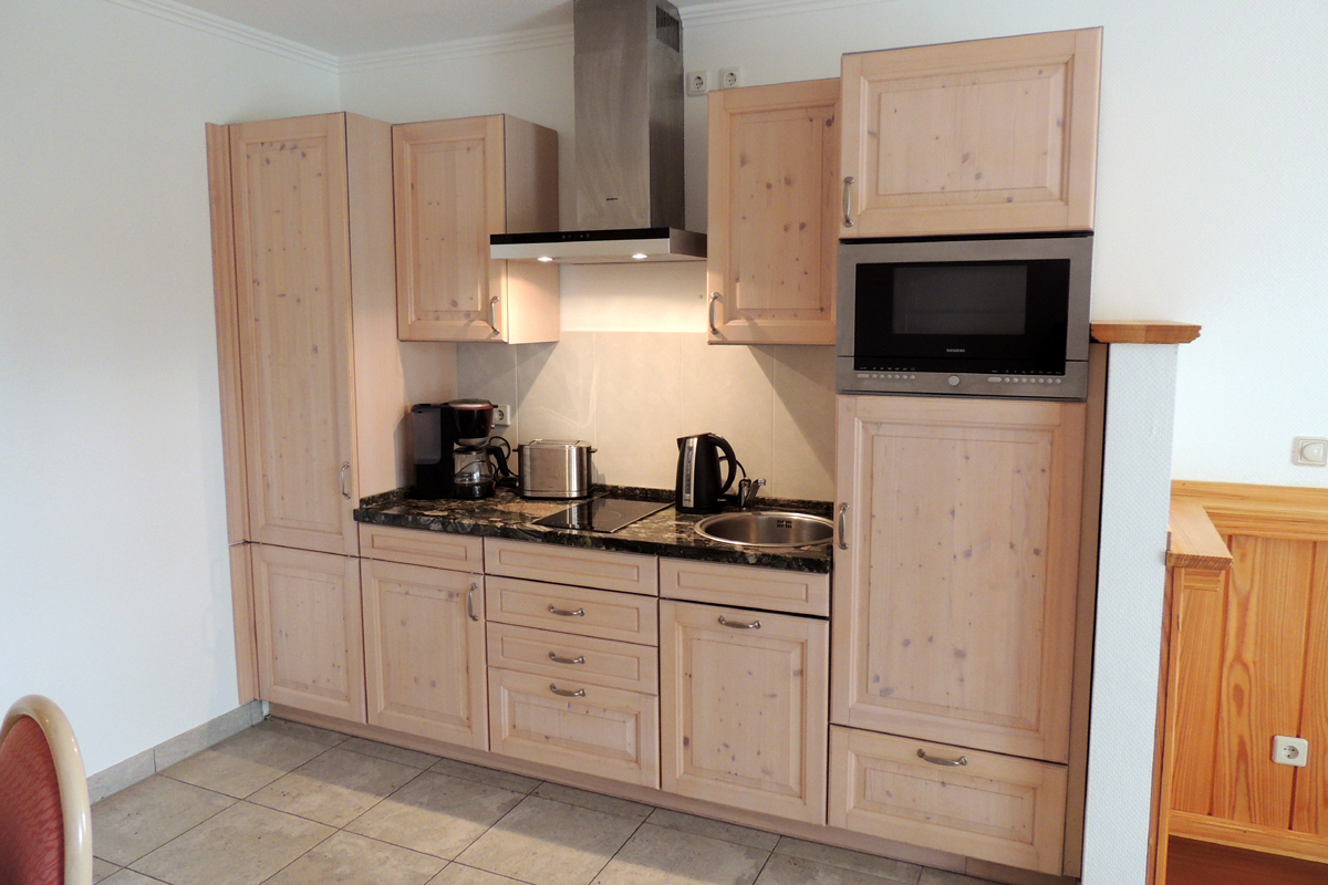 2 Personen, Wohn-Schlafbereich mit zwei gemütlichen Sesseln, Doppelbett; 1 Aufbettung Couch; integrierte Küche,